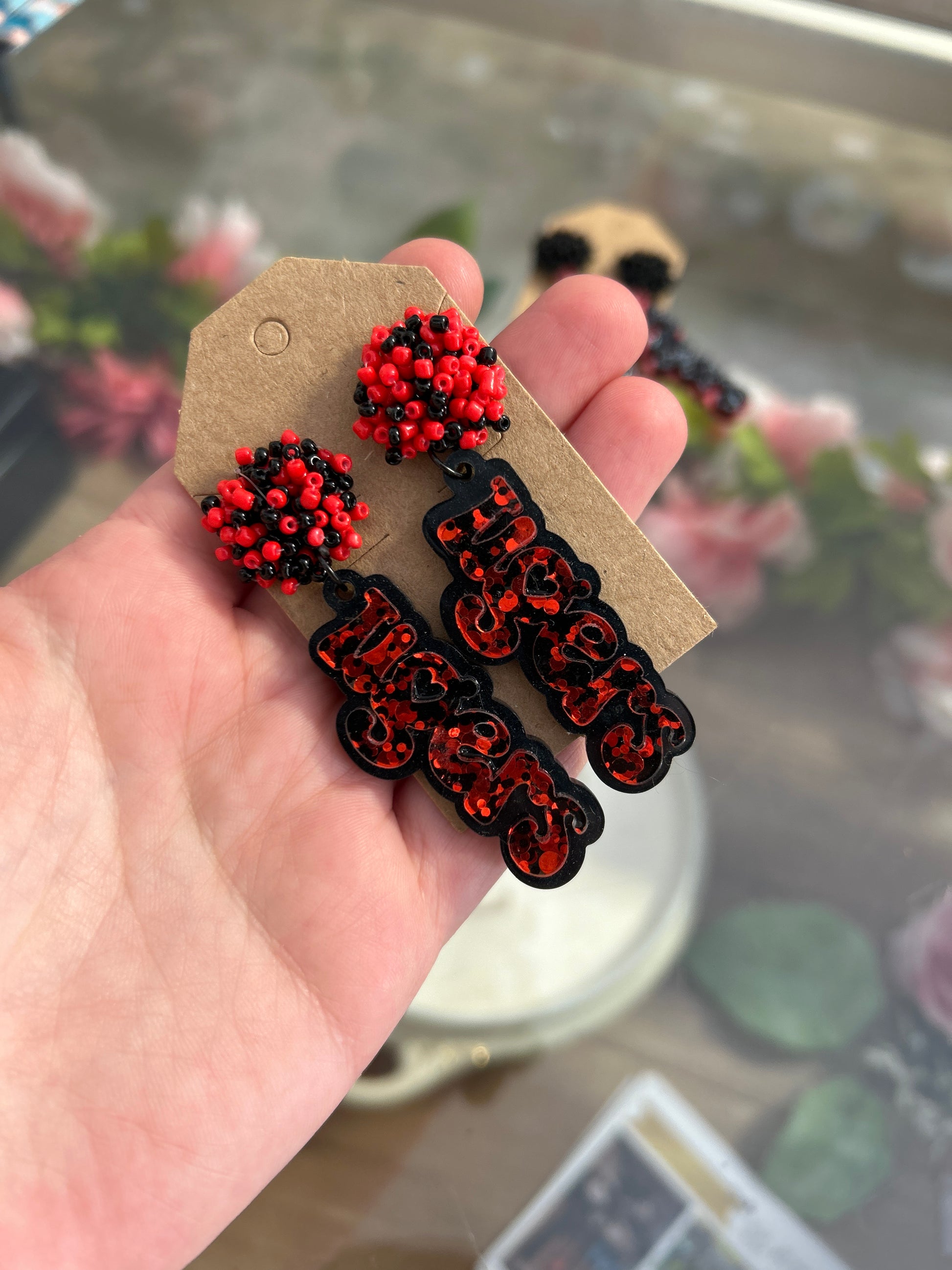 Wild Whimsies - Tiger Earrings Red Beads